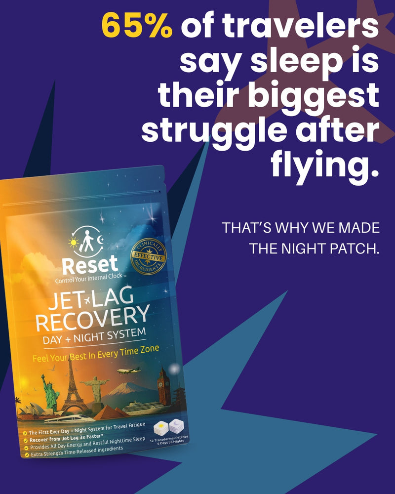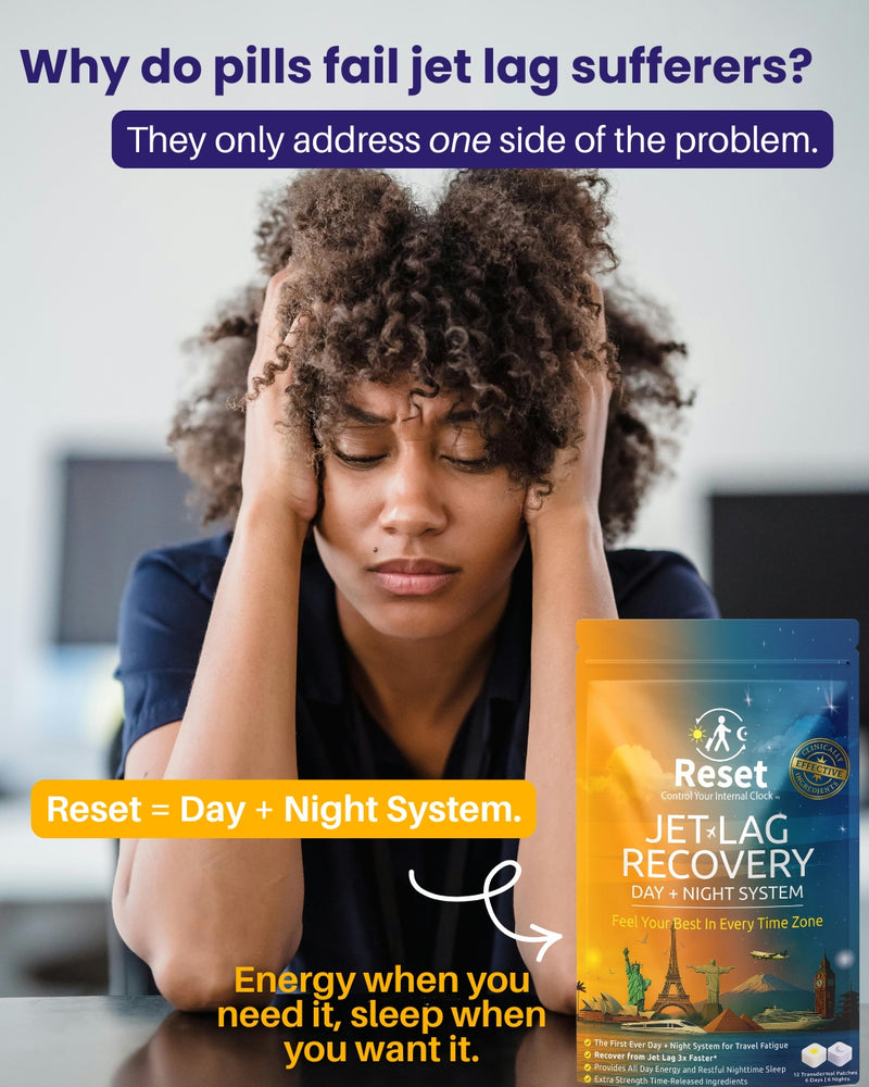 The worlds only dual day/night transdermal path system for relief from travel fatigue and jet lag.